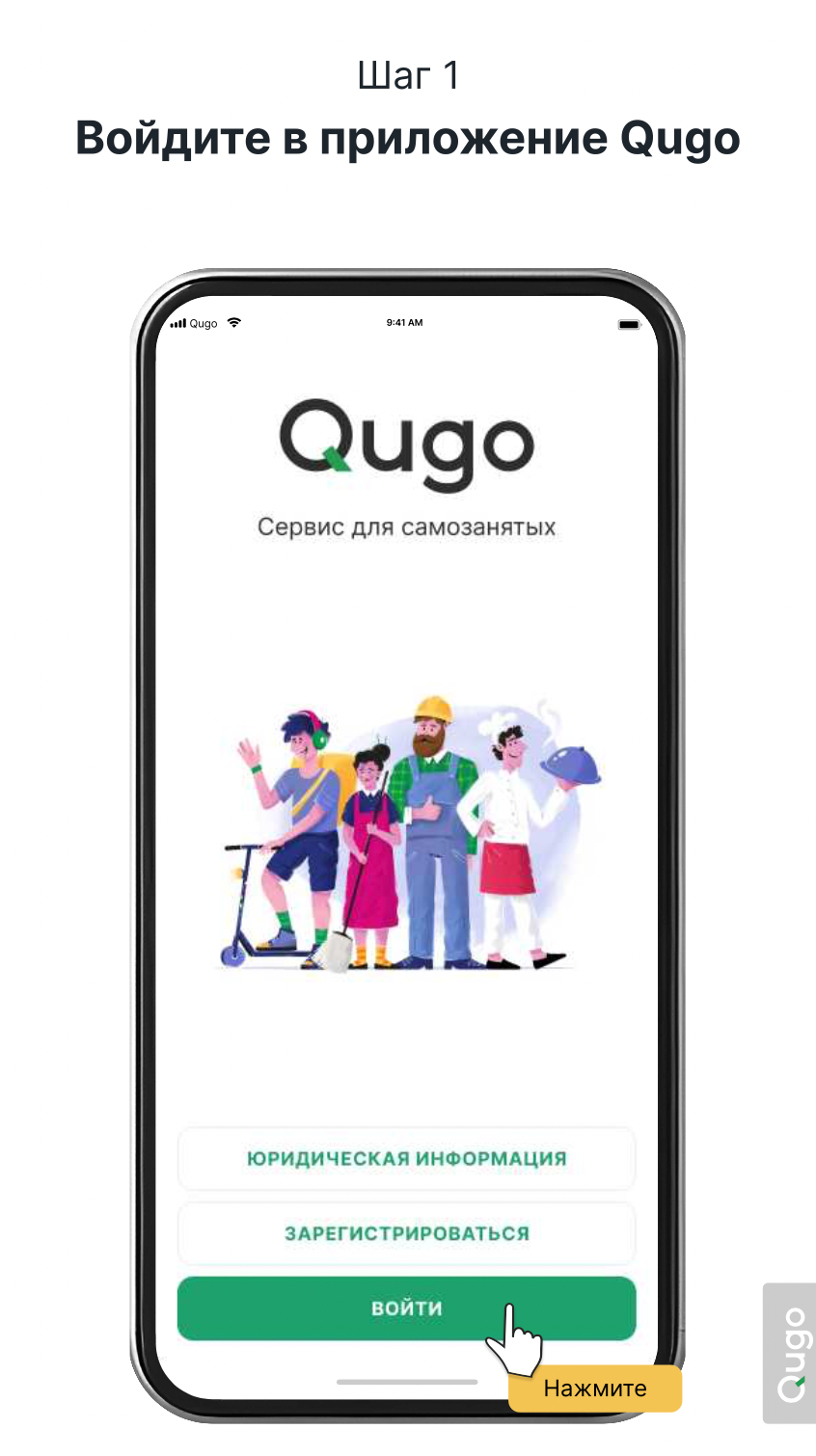 Если вы самозанятый курьер, для получения выплат нужно скачать приложение Qugo или Консоль.Про — какое именно, вам подскажет онбордер. После этого нужно пройти регистрацию.