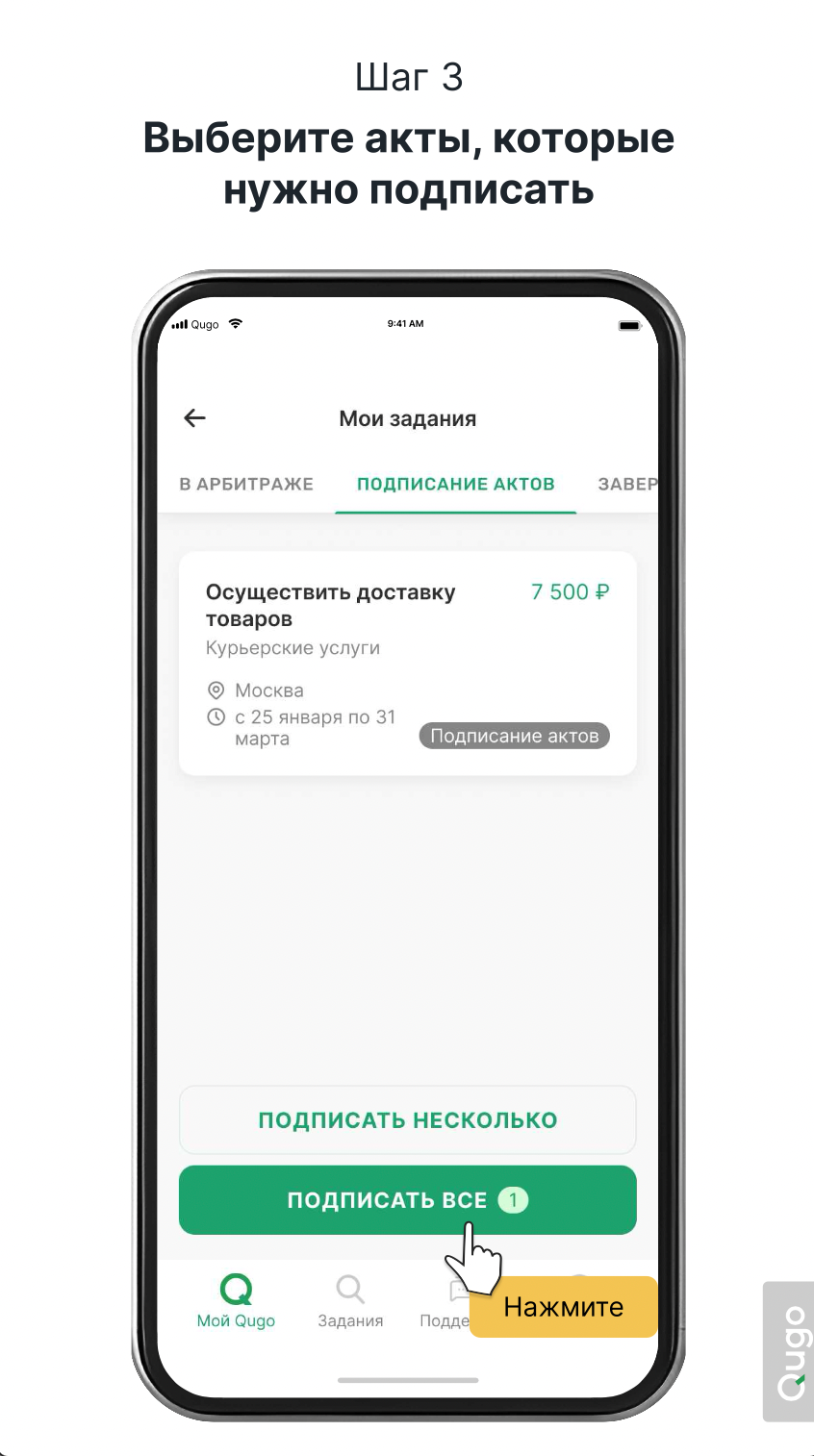 Если вы пользуетесь платформой Qugo, акты нужно подписывать раз в месяц. Вот какие акты могут вам приходить: